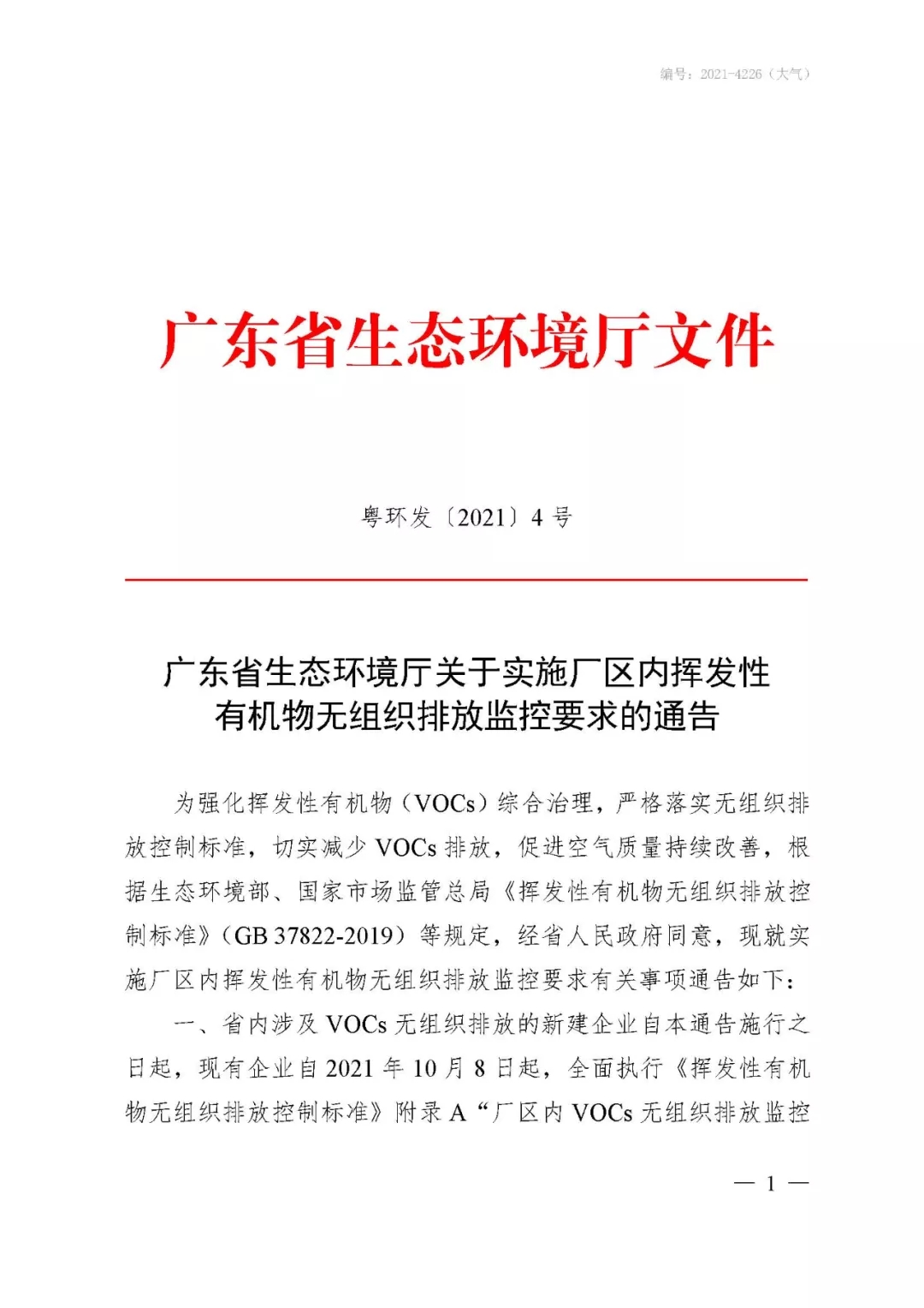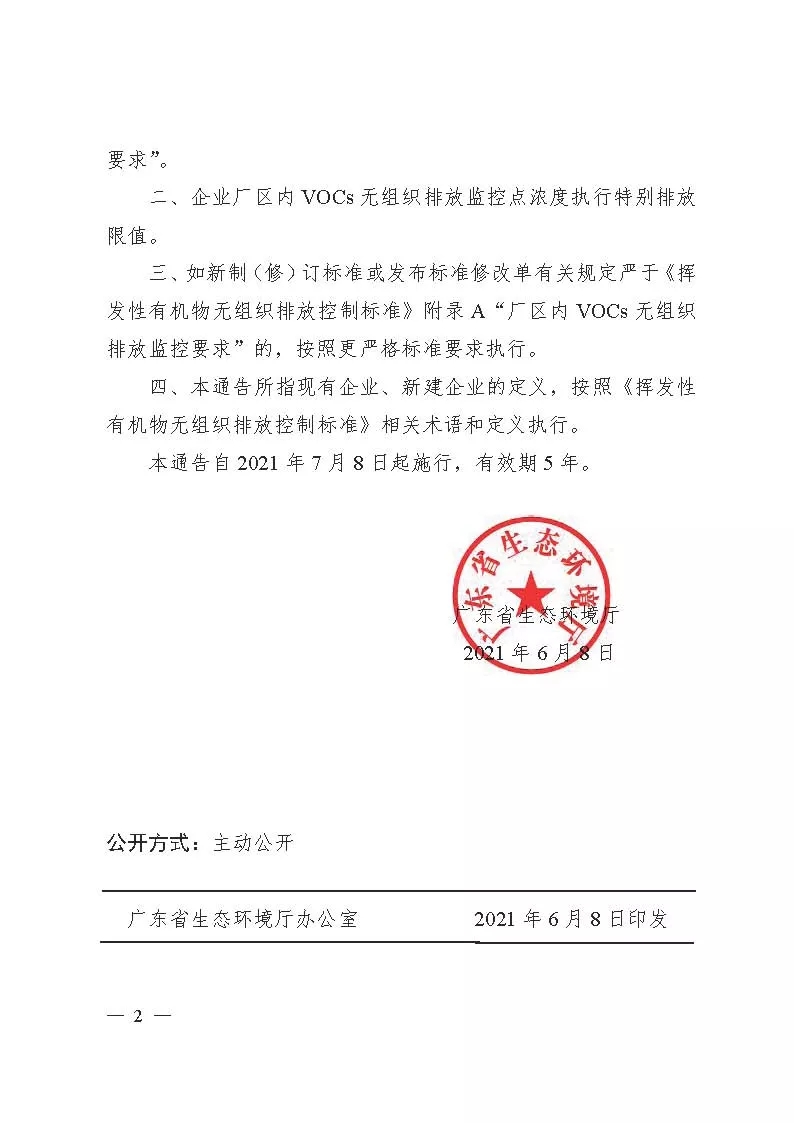 6月8日,廣東省生態(tài)環(huán)境廳發(fā)布《關(guān)于實(shí)施廠區(qū)內(nèi)揮發(fā)性有機(jī)物無組織排放監(jiān)控要求的通告》,要求省內(nèi)涉及VOCs無組織排放的新建企業(yè)自本通告施行之日起,現(xiàn)有企業(yè)自2021年10月8日起,全面執(zhí)行《揮發(fā)性有機(jī)物無組織排放控制標(biāo)準(zhǔn)》附錄A“廠區(qū)內(nèi)VOCs無組織排放監(jiān)控要求”。企業(yè)廠區(qū)內(nèi)VOCs無組織排放監(jiān)控點(diǎn)濃度執(zhí)行特別排放限值。