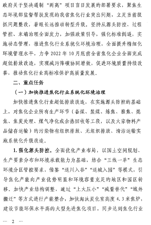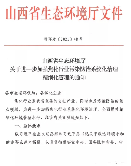 新鮮文件:《關(guān)于進(jìn)一步加強(qiáng)焦化行業(yè)污染防治系統(tǒng)化治理精細(xì)化管理的通知?》發(fā)布